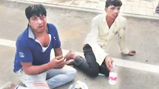 New Delhi, Jun 28 A video has emerged showing a group of Hindutva extremists forcing two Muslims youths to eat cow dung and drink cow urine for allegedly transporting beef over a fortnight ago.