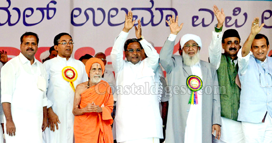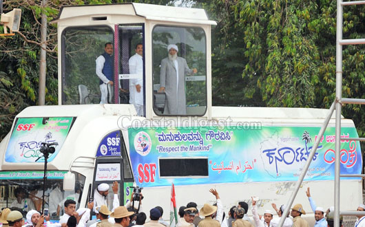 Karnataka Chief Minister Siddaramiah, Pejwar Mutt chief pontiff Visweswara Theertha Swamy, Forest minister B Ramanath Rai, Heatlh Minister U T Khader, Urban Development Minister Vinay Kumar Sorake and other prominent social, religious and political leaders, who were present at the programme, hailed the nine-day long Karnataka Yatra of Musliyar and expressed all support to him.