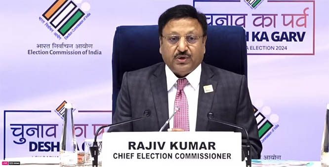 New Delhi: The 2024 general election for 543 Lok Sabha seats will be held in seven phases from April 19, Chief Election Commissioner Rajeev Kumar said today, announcing the largest democratic exercise in the world. Results will be announced on June 4.