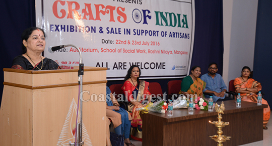 Mangaluru, July 22: Lions Governor Kavitha Shashtri symbolically inaugurates Craft of India two day expo cum sale at Roshni Nilaya College, Mangaluru on Friday. This Craft of India expo is jointly organised by Socio-Economic forum, Inchara Foundation and Gudi.