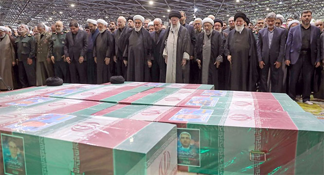 The mass public received the coffins of the eight victims of the crash at the University of Tehran on Wednesday morning before Ayatollah Khamenei led prayers on the bodies.