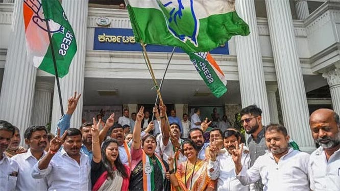 Bengaluru: In a boost to the ruling Congress in Karnataka, the party on Saturday swept the by-polls to three Assembly segments, causing a major setback to the BJP-JD(S) alliance in the state.