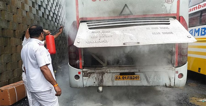 At around 6:30 am on Thursday, as the bus reached Subrahmanya Curve in Uppinangady, smoke began to fill the interior. Upon stopping the bus, the fire in the engine intensified.