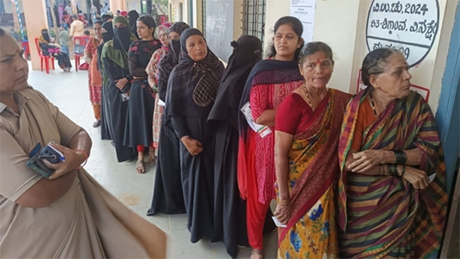 Bengaluru: An estimated overall 10.14 per cent voter turnout was recorded during the first two hours, since the voting began for bypolls to three Assembly segments in Karnataka on Wednesday, election officials said.
