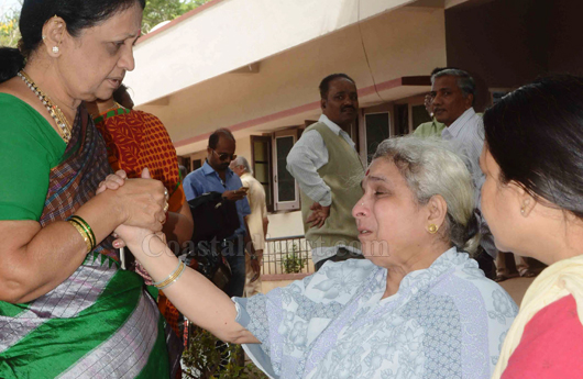 Umadevi wife of Rationalist and scholar MM Kalburgi who was shot dead at his residence in Dharwad on Sunday, seen at Civil Hospital