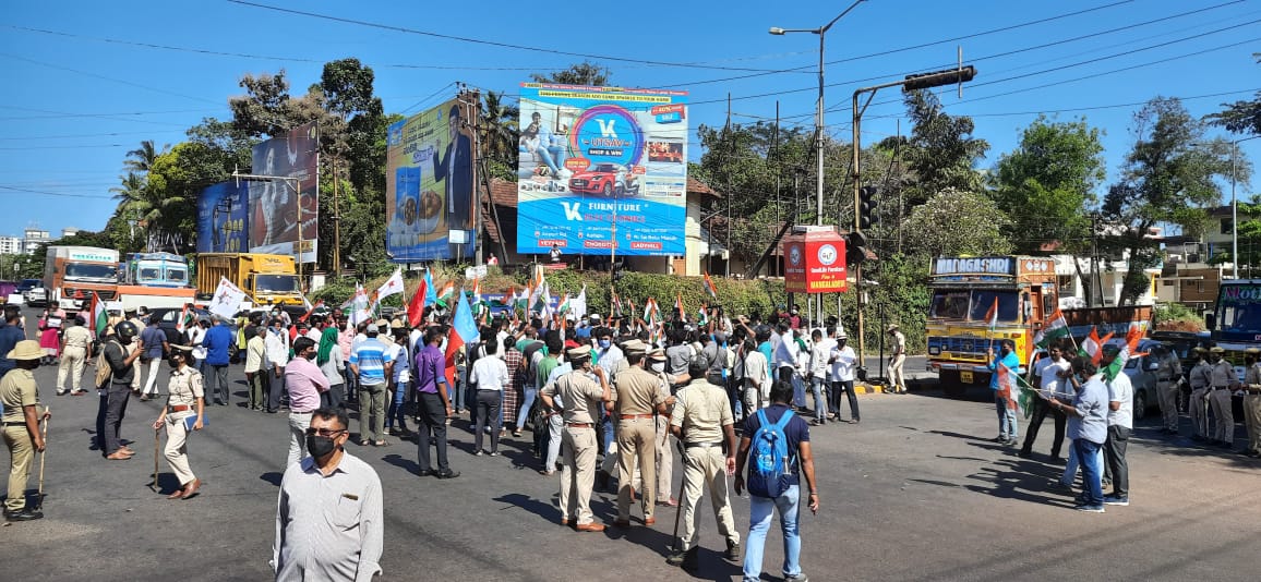 A rasta roko protest was held at Nanthoor in the city at 10am. Leaders and workers of Congress, CPIM, DYFI among other parties pro-farmer groups and social activists took part in the Nanthoor protest.