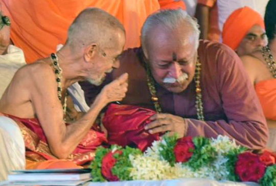 Udupi, Nov 24: RSS chief Mohan Bhagwat and Paryaya Pejawar Mutt seer Vishwesha Thirtha Swami on Friday said that Ram Mandir will be constructed in the land were saffronists demolished Babri mosque in 1992.
