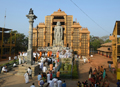 Two two-storey viewers’ galleries flanking the statue have been erected to help people view the rtuals.