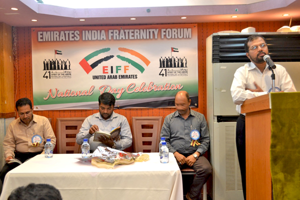 Janab Nasir Hussain in his presidential address expressed his happiness in celebrating the 41stU.A.E National day. EIFF has planned to conduct a quiz competition based on this book expected to be arranged shortly. He requested the people to join hands with EIFF in serving the Expatriate wherever and whenever necessary.