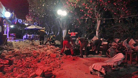 The epicentre of the shallow 6.7 magnitude quake was some 10.3 kilometres (6.4 miles) south of the major Turkish resort of Bodrum, a magnet for holidaymakers in the summer, and 16.2 kilometres east of the island of Kos in Greece, the US Geological Survey said.