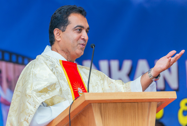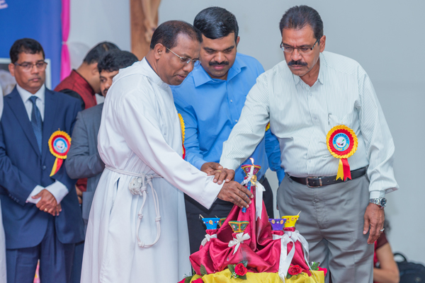 Inaugural ceremony started immediately after the Holy Mass. M.C., Donny Correa and Suzan Azaredo welcomed the crowd. After the Flag march from various churches, Prayer Dance performed by St. Paul’s Church kids brought the atmosphere of celebration. John D’Lima, the Coordinator of Konkani Community, welcomed all Priests and Dignitaries on to the dais for the formal inauguration of the function.The guests of Honour who attended the function were M/s. Austin Prabhu, Joel Crasta, Robert D’Souza, GalliMinaraBabu and Nazareth Alphonso. Rev. Fr. Wilson Rumao, Spiritual Director, Konkani Community, Musaffah started the opening prayer and wished the function all the best. M.C. announced the lighting of lamps by all Priests and Guests of Honour. A huge cake was cut in commemoration of the event. Rev. Fr. Ani Xavier Parish Priest of St. Paul’s church Musaffah apprised the Konkani community of Musaffah for their contribution not only to the community but also for church and appreciated their active participation in all other church activities.