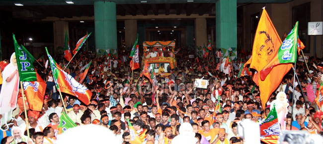 The BJP president however did not addressed the party workers, as he arrived late to the road show.