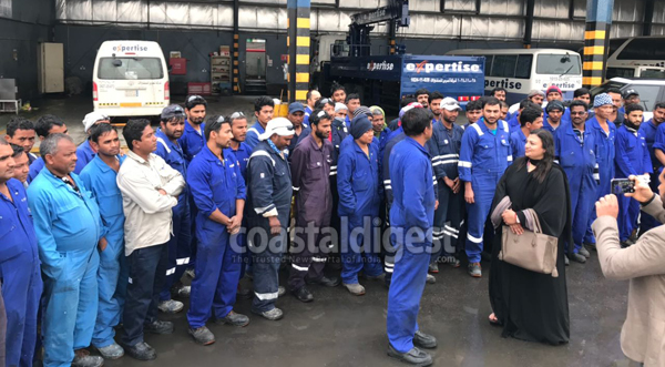 Realtech Ismaeel, Zakariya Muzain, Asif Amaco among other NRK businessmen extended her a warm welcome and accompanied her to the NRI labour camps in the region.