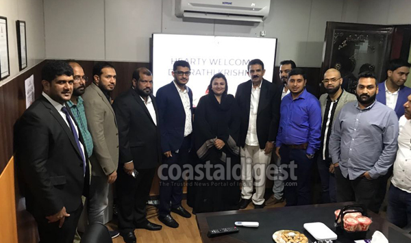 Clad in black, Ms Krishna visited various business companies owned by Kannadigas, especially Mangalureans in Jubail including Expertise, Realtech and Al-Muzain. She also visited the NRI labour camps and interacted with them.