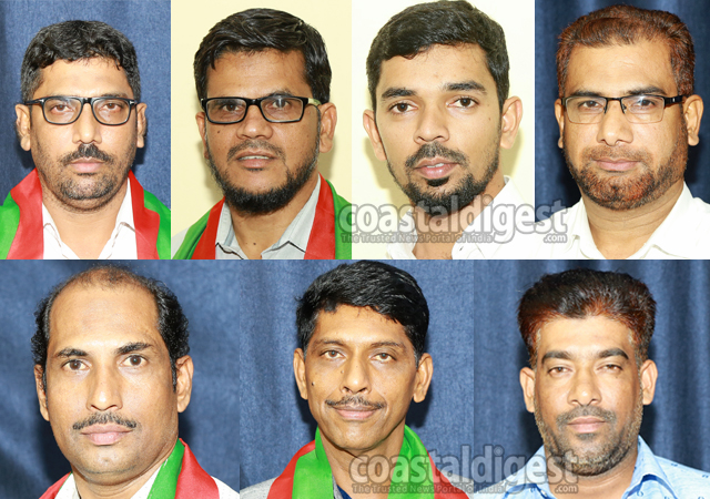 (From top left) Nurulla kulai, Sahul SH, Iqbal Bellare, Athaulla Jokatte, Ashraf Manchi, Antony PD, Iqbal IMR.The party’s district committee elections were held following the district level representatives meet at Freedom Community Hall in Mittur yesterday. Mr Jokatte launched the meet by hoisting the party flag and delivered introductory address.