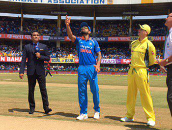 Indore, Sept 24: Australia have elected to bat after winning the toss against India in the third one-day international match that is being played between the two sides at the Holkar Stadium in Indore today.