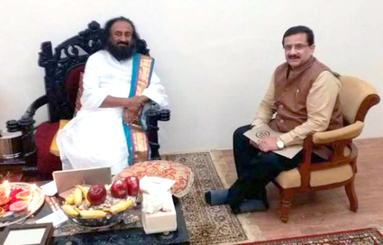 Shia Central Waqf Board chairman Wasim Rizvi meeting with Sri Sri Ravi Shankar over the Ram Temple issue.
