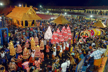 A march was taken out from the medical mission junction to the Pandalam Ayyappa temple, in which thousands of people, including women took part, chanting 'Ayyappa Sarnam' and demanded a review of the Supreme Court verdict.