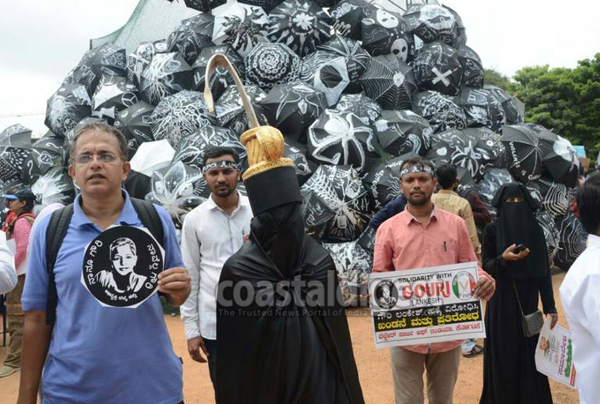 A special edition of Gauri Lankesh weekly was released. The protest meeting is likely to go on till evening.