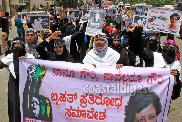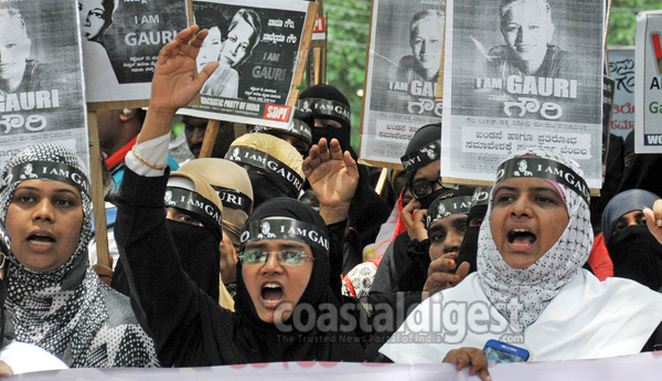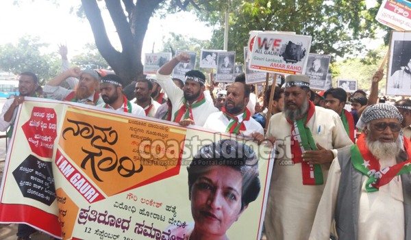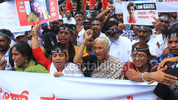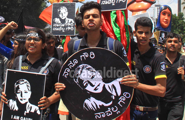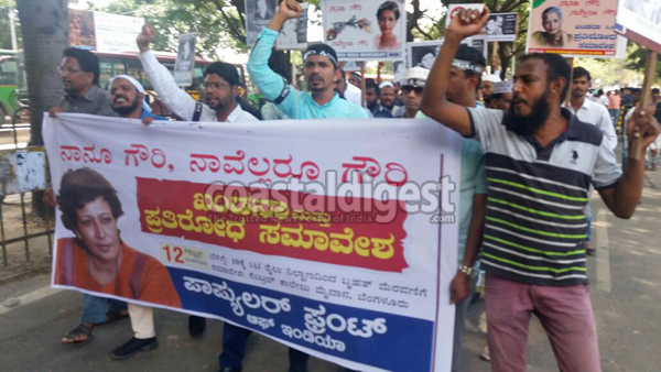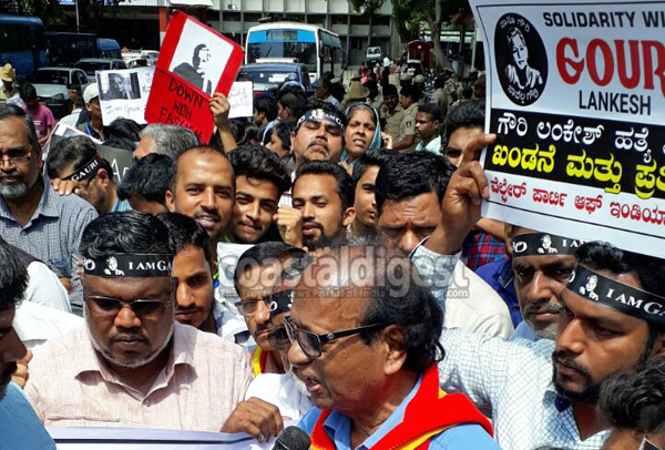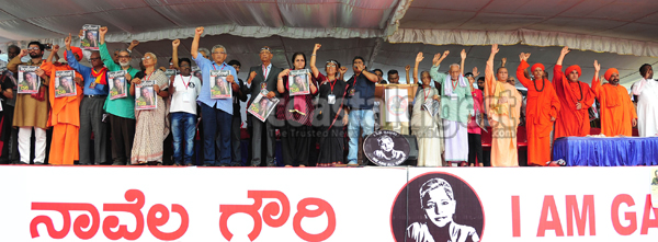 Bengaluru, Sept 12: Thousands of fans of slain journalist-activist Gauri Lankesh including progressive thinkers, writers and rights activists came together on Tuesday to protest the coldblooded murder of one of the most fearless journalists the country has ever produced.