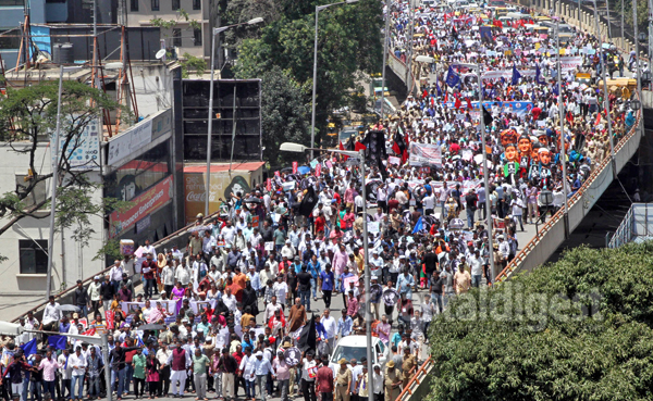 Sporting black badges that read - #IAmGauri - the protesters took out a rally from the Sangolli Rayanna Railway Station to the Central College grounds, where a protest meeting was held. Over 300 policemen were deployed in and around the Central College.