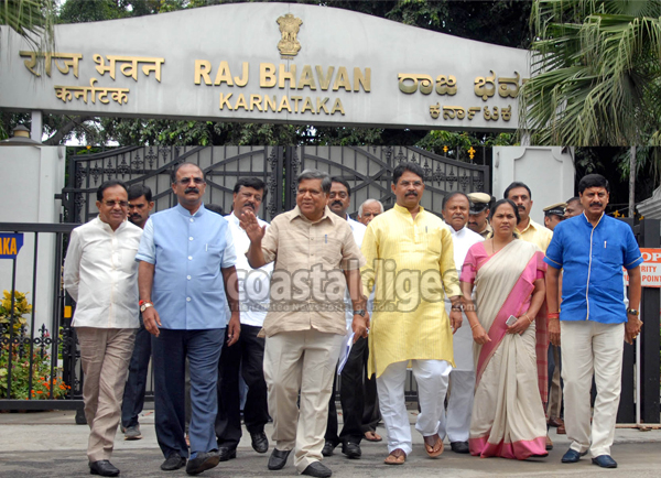 Bengaluru, Sept 2: The state BJP leaders on Friday urged Governor Vajubhai Vala to disqualify eight MLCs, including R B Timmapur, for furnishing false information to include their names in electoral rolls in Bengaluru last year.