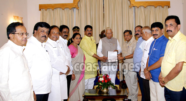 The memorandum was submitted by a delegation of party leaders led by Opposition leader in the Legislative Assembly Jagadish Shettar.