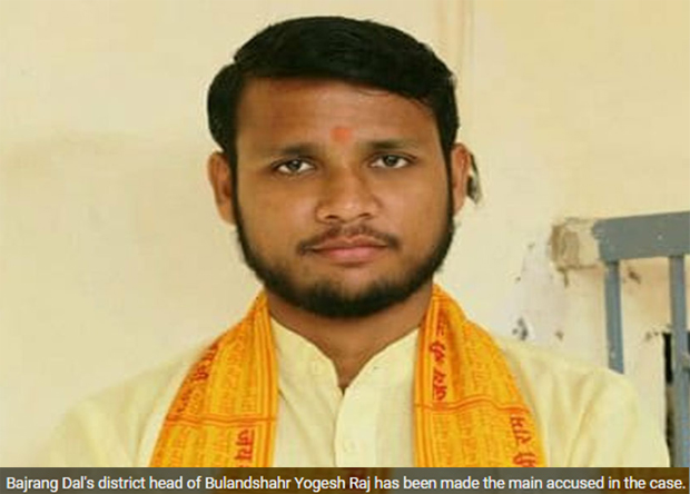 Bajrang Dal’s Bulandshahr district chief Yogesh Raj has been made the number one accused for the riot and has been booked for murder and attempt to murder under sections 302 and 307 of the Indian Penal Code, respectively, as well as various sections of arson and damaging public property.