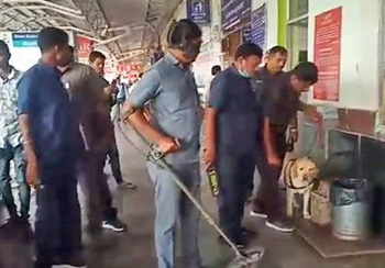 In the wake of the bomb found at Mangalore Airport on Monday morning, the team visited the railway station as a precautionary measure.