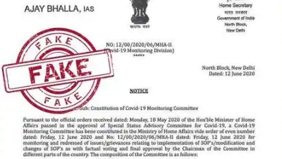 The "Fake" MHA order stated, "Pursuant to the official orders received dated: Monday, May 18, 2020, of the Honourable Minister of Home Affairs, passed in the approval of Special Status Advisory Committee for COVID-19, a COVID-19 Monitoring Committee has been constituted in the MHA vide order dated: Friday, June 12, 2020."