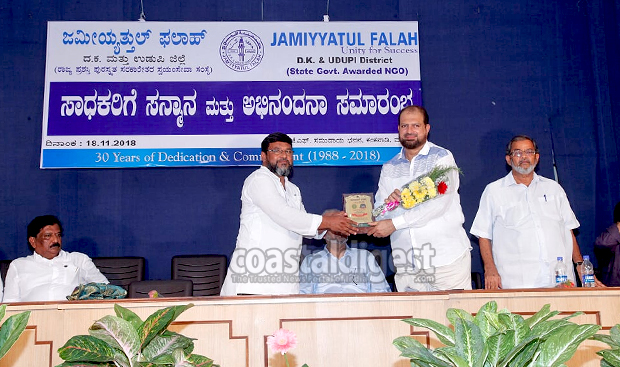 Mangaluru, Nov 22: Jamiyattul Falah (Unity for Success), a state government award winning charity organization conducted the felicitation ceremony on Sunday, 18/11/2018 at 2:00pm in JF HQ Community Hall, Kankanady, Mangaluru.