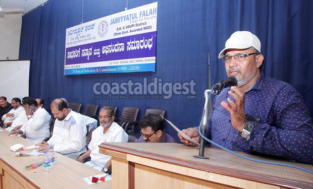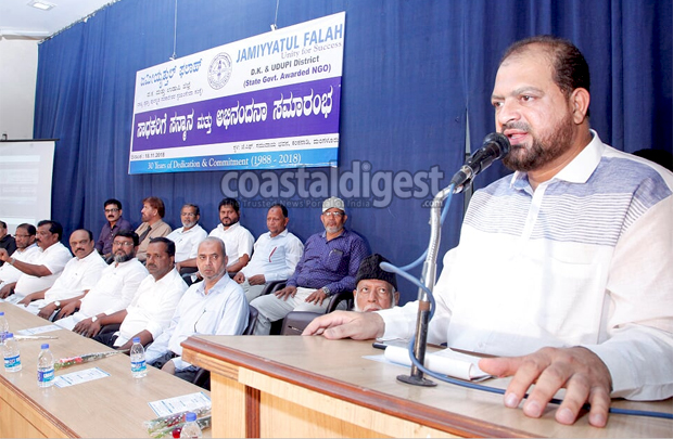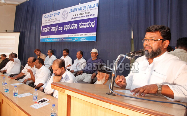 Prominent leaders of the community K.A.S. Masood, Kanachur Monu, Mr. P.B. Abdul Hamid, Mr. Mohammed Kunjathabail, K.P. Ibrahim, Yasin Malpe, J F forunder Iqbal Yousef along with Jamiyattul Falah district President Shahul Hameed K.K., Secretary Salim Handel, Treasurer Ibrahim Kodijal and NRCC representatives Shahul Hameed, Parvez Ali and Abu Mohammed were present on the dais and all the units president and members including newly appointed Administrator of the organization Shameer Ahmed Kudroli were present to grace the occasion.