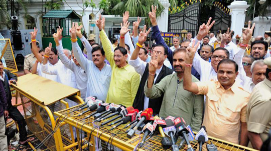 Subsequently, the rattled Congress tucked away 44 of its MLAs to a Bengaluru resort to insulate them from alleged "poaching" attempts by the BJP.