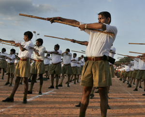 During various programmes, the RSS organises path-sanchalan, where lathis are openly displayed by hundreds of volunteers.