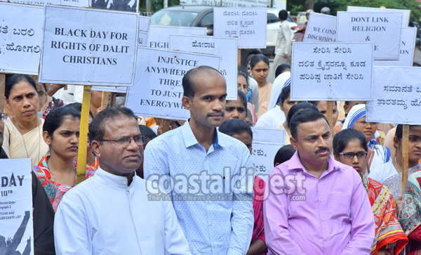 Mangaluru, Aug 10: The Social and Media Committee of the Mangaloru Diocesan Pastoral Parishad held a demonstration in front of D K DC’s office on Thursday demanding amendment of Constitutional Order 1950 (Scheduled Caste) in order to include Dalit Christians also in the Scheduled Caste.