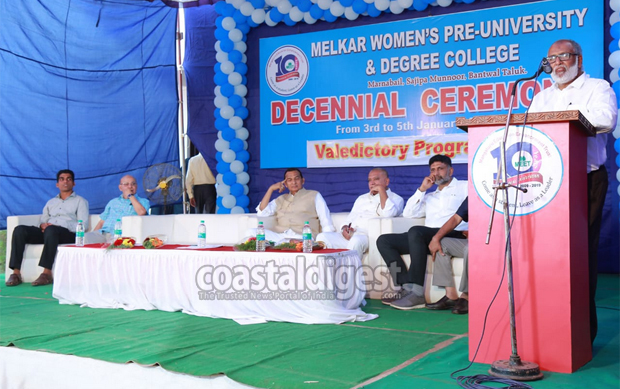 Bantwal, Jan 5: The valedictory programme of the decennial ceremony of the Melkar Women’s Pre-University and Degree College, managed by the Mangalore Education Enhancement Trust, was held today on the college campus at Marnabail in Bantwal taluk.