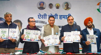 New Delhi, Feb 2: The Congress on Sunday released its manifesto for Delhi polls, promising to implement unemployment allowance of Rs 5,000-7,500 per month and cashback schemes for water and power consumers, if voted to power.