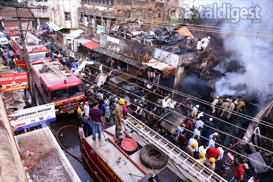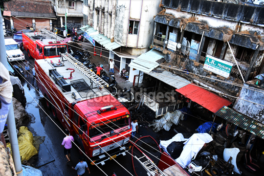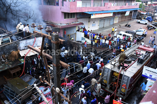 There was no loss of life reported from the fire which was noticed at 6 a.m. at the scrap shop located on Bibi Alabi Road in Bunder. Short circuit is said to be the reason for the mishap.