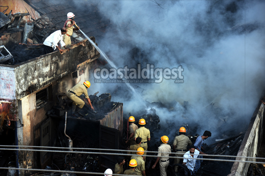 Mangaluru, Mar 16: A massive fire swept through a scrap yard creating panic among local residents at Bunder area in the city on Friday morning.