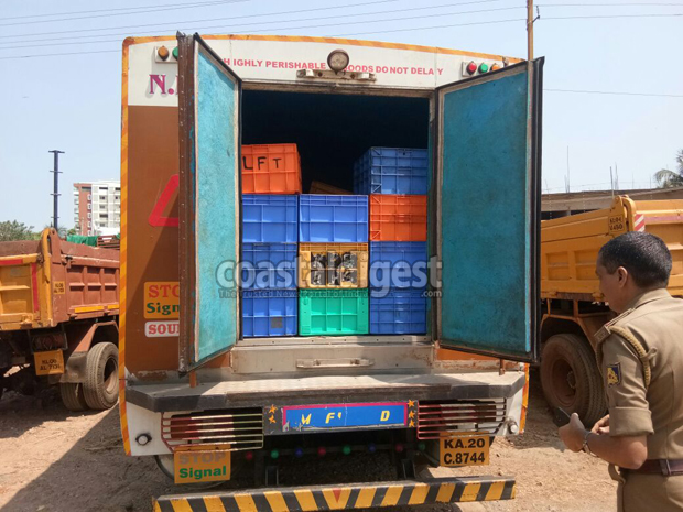 Mangaluru, Mar 25: The Ullal police on Friday night seized a containerised fish-transporting truck in which sand was allegedly being transported to Kerala.