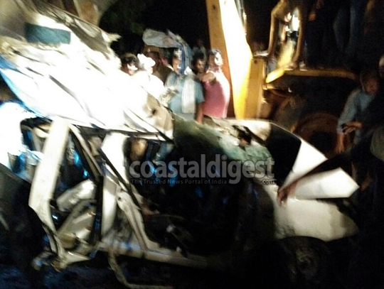 According to the police, the accident occurred around 7.30 pm on National Highway 209 at Huchchammanadoddi near Thoppuganahalli petrol bunk. The car was heading towards Bengaluru. It came beneath lorry and was crushed due to the impact.