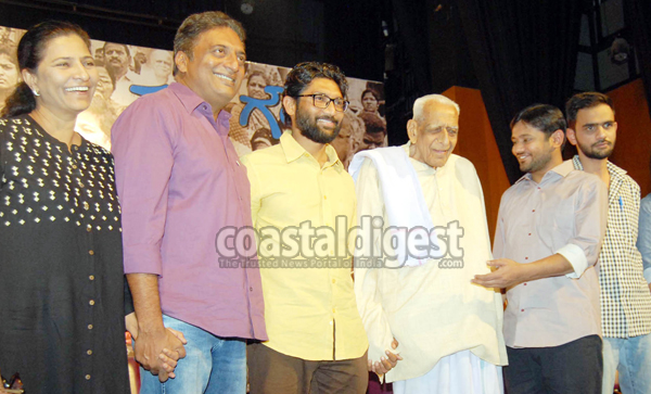 The event was addressed by Mewani, former JNU students' union president Kanhaiya Kumar, former vice-president Shehla Rashid, JNU student Umar Khalid, and Richa Singh, first woman president of the Allahabad Central University students' union. All of them, referred to as 'Gauri's children,' spoke against right-wing forces.