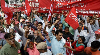 The central trade unions are protesting against labour reforms, FDI, disinvestment, corporatisation and privatisation policies and to press for a 12-point common demands of the working class relating to minimum wage and social security, among others.