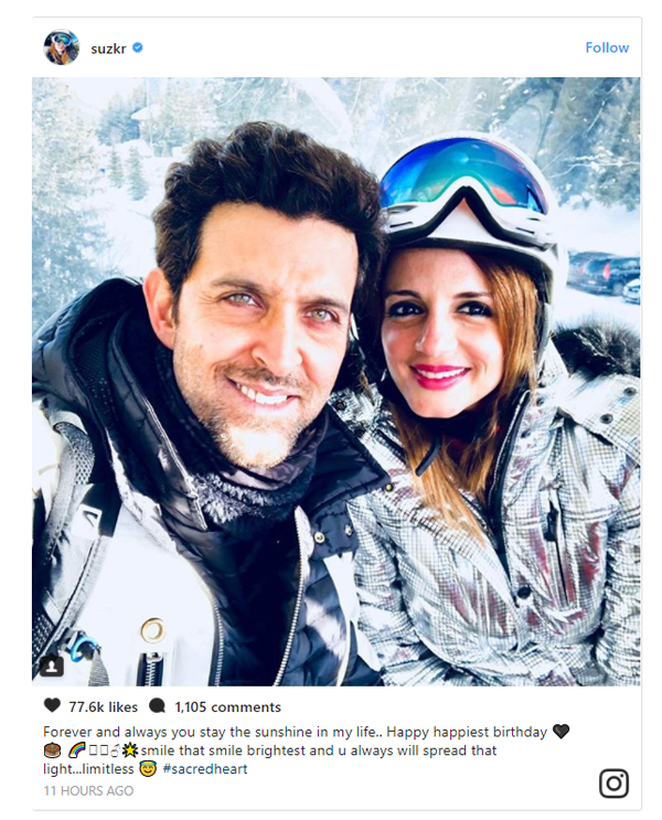 Today, when Hrithik turns a year older, Sussanne shares a heartfelt post for her ex-husband alongside an adorable picture of them on Instagram.