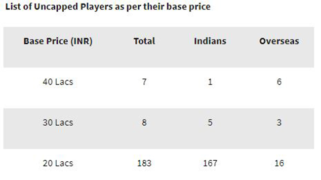 A total of 186 Indian players, 143 overseas players and three players from Associate Nations will be auctioned.
