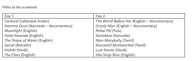 In all, 15 films will be screened during the two-day fest, which also includes a panel discussion on September 6 by B Suresha and Natesh Ullal. The upcoming South Indian actor Siddhi Mahajankatti will be the chief guest for the closing ceremony on September 6.