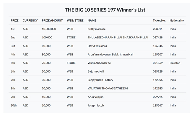 His winning ticket number is 208011. Out of top 10 winners, there are nine Indians and one Pakistani.