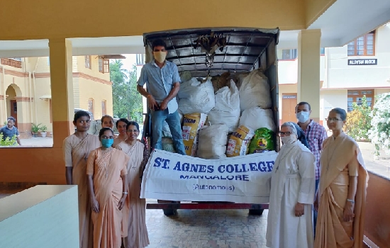 Mangalore, May 2: More than 500 families received ration kits in a distribution drive conducted by St Agnes College in outskirts of Mangaluru on Wednesday.