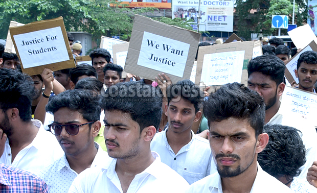 The protest follows three cases of suicide of students in Dakshina Kannada between September 13 and September 30. While 17-year-old Vinuta reportedly hanged herself in the hostel room in Alva’s Pre-University College in Moodbidri on September 13, 17-year-old Nevil Fernandes from Expert Pre-University College, Kodialbail, allegedly hanged himself in his house at Urva on September 24. The 20-year-old BE student Sharath Babu from Srinivasa Engineering College reportedly hanged himself in his room at Valachil on September 30.
