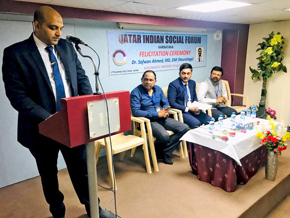 Doha: Dr Safwan Ahmed of Mangaluru who is on a short visit to Qatar was facilitated by ‘Qatar Indian Social Forum’ on Monday, November 4 2019.